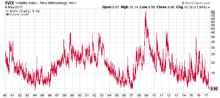 The VIX Index fell to single digits last week, though it recovered to above 10 by the end of the week. Nevertheless, current levels represent multi-year lows.