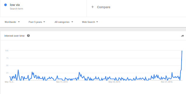 Investor angst has been rising over the low level of the VIX Index. A simple glance at Google Trends tells the story of rising anxiety.