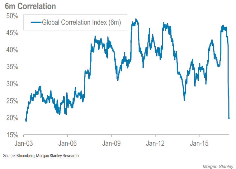 Morgan Stanley also observed a similar level of low correlation between asset classes, which also lowers overall volatility.