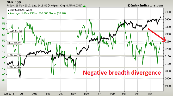 Your second breadth chart shows RSI, not % above 10 day MA and the % has fallen only very slightly. However, you probably made your case with the % for the 5 day MA.