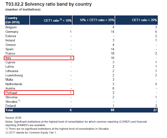 Should Chinese growth start to wobble, another source of global vulnerability is the European banking system. This ECB Q4 2016 report shows that the most exposed banks are in Italy and Portugal, indicating that peripheral Europe credit risk really hasn’t gone away. European bank exposures are exacerbated by the practice of eurozone banks to load up on the debt of their own sovereigns. Should a banking crisis occur, it would be the responsibility of each member state to rescue their banks, which is stuffed full of paper of their own countries. (Wait a minute, how do you rescue yourself?)