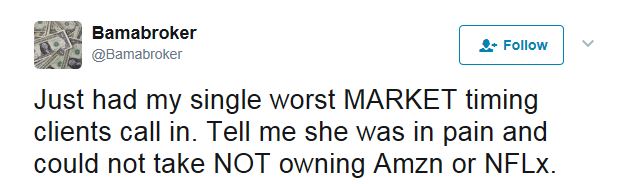 At a tactical level, Bamabroker tweeted on Friday that his most contrarian client had also thrown in the towel and was chasing AMZN and NFLX.