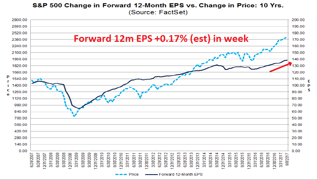Wall Street continues to revise earnings estimates upwards, according to Factset.