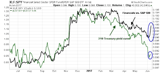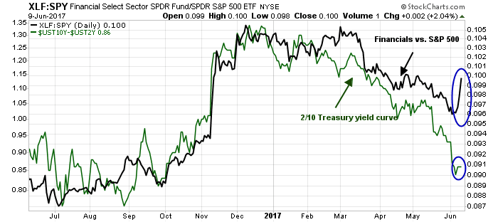 Some of the funds that left the high flyers went into other sectors, such as Financials. This sector also benefited from the early signs of a steepening yield curve.