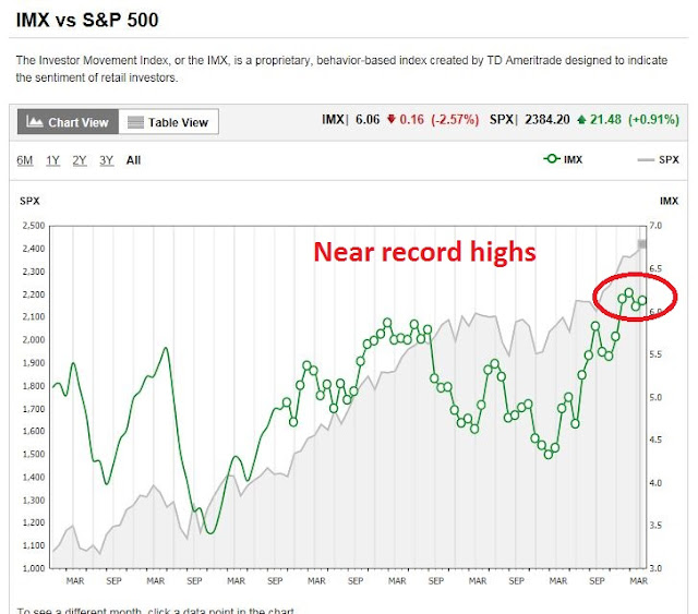 I have stated that while I don’t believe that the stock market has made its final cyclical top, we are in the late stages of a bull market (see Risks are rising, but THE TOP is still ahead and Nearing the terminal phase of this equity bull). Nevertheless, psychology is getting a little frothy, which represent the pre-condition for a major top.