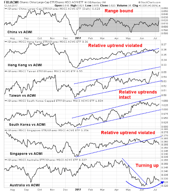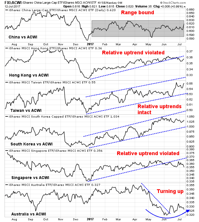 The one anomalous pattern is Australia, which has rallied out of a relative downtrend and its relative strength is staring to turn up.