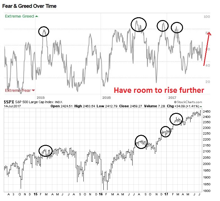 Looking out to the next few weeks, the Fear and Greed Index remains at a neutral reading. As long as the positive fundamental backdrop remains in place, stock prices are likely to grind up to new highs this summer.