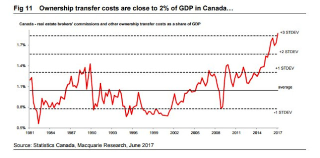 Amber Kanwar of BNN recently pointed out that real estate transfer fees are roughly 2% of GDP in Canada (compared to about 1.5% in the US at the peak of the last bubble).