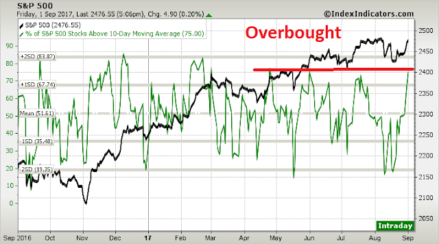 Other short-term breadth indicators from Index Indicators are flashing overbought signals.
