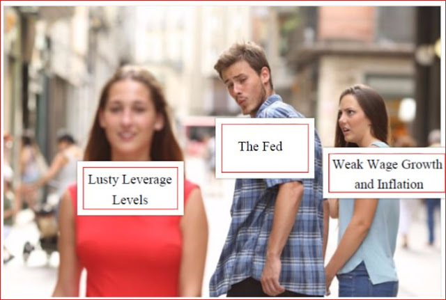 A picture is worth a thousand words. The following picture dramatically illustrates the Fed`s policy dilemma, as it balances its financial stability responsibilities with current data showing weak inflation and wage growth. Current Fedspeak has focused on the need for financial stability, which indicates that it is likely to remain on its policy normalization path.