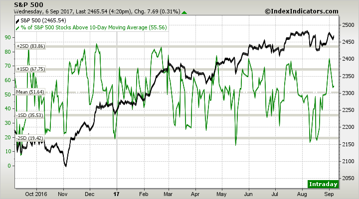 Short-term breadth indicators from Index Indicators have retreated from overbought levels and they are now in neutral territory.
