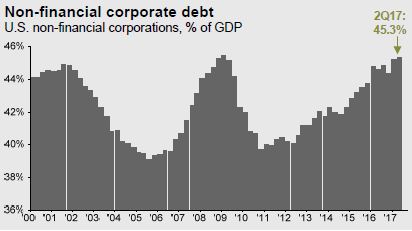 The corporate sector has also re-levered its balance sheet to levels seen at past cycle peaks. The combination of consumer spending poised to turn down, peaks in corporate profits, and bottom in debt financing costs makes the companies vulnerable to a downturn.