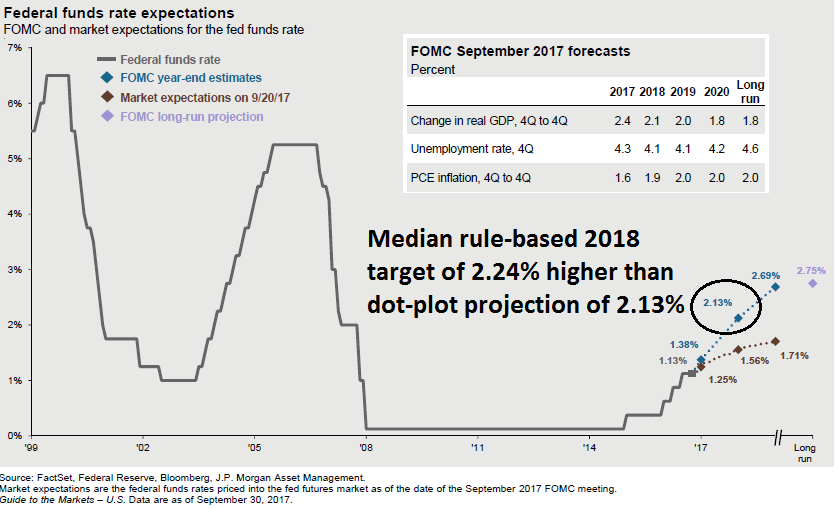I would then point out that the median 2.24% 2018 year-end target is higher than the current dot-plot projection of 2.13%. Moreover, the current dot-plot projection is substantially higher than market based expectations for the Fed Funds rate.