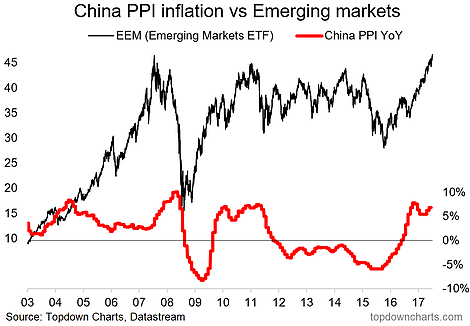 The latest upside surprise in Chinese PPI prompted David Ingles at Bloomberg to ask if China is leading a bout of global reflation.