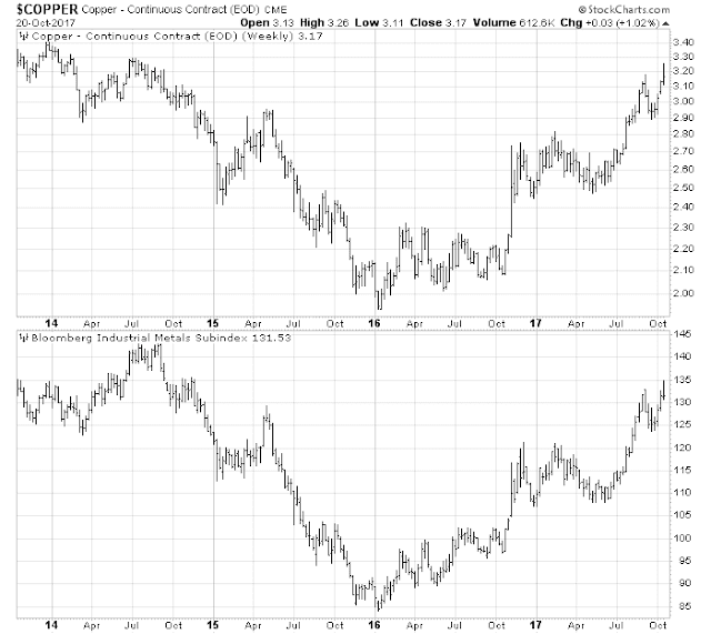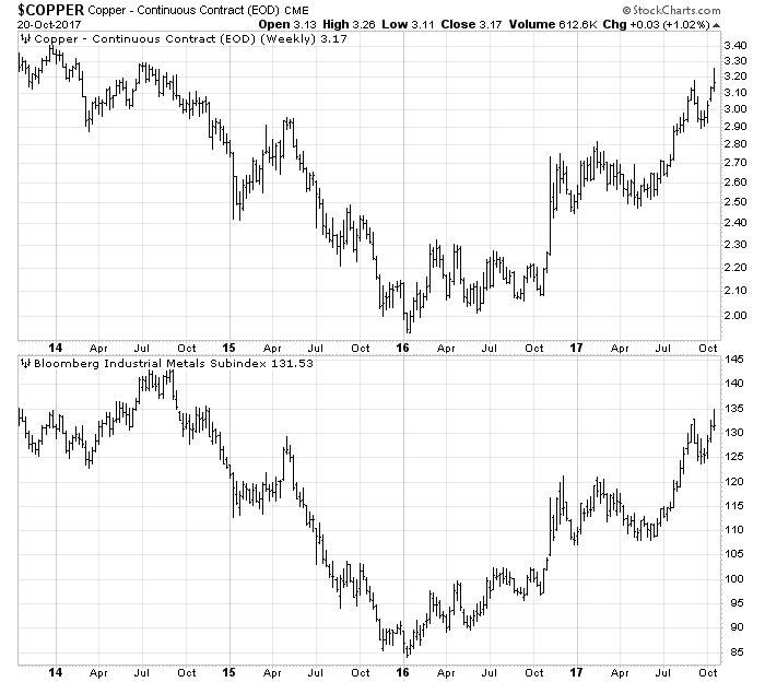 Copper and industrial metal prices have been on a tear lately. Prices bottomed out in early 2016, and the latest rally has seen a recovery to levels last seen in 2014.