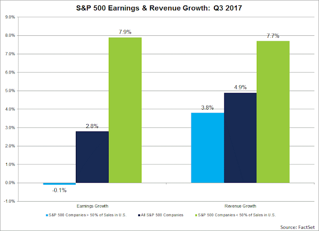 Another worrisome macro and fundamental headwind can be found in the strength of the USD. FactSet found that companies with greater foreign exposure tended to see better sales and earnings growth.