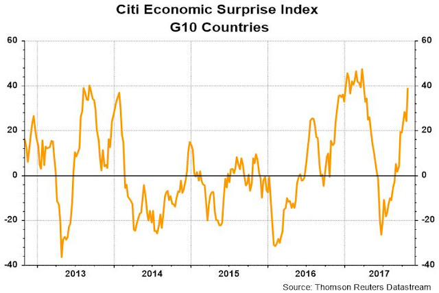 The G10 Economic Surprise Index, which measures whether macro indicators are beating or missing expectations, is surging.