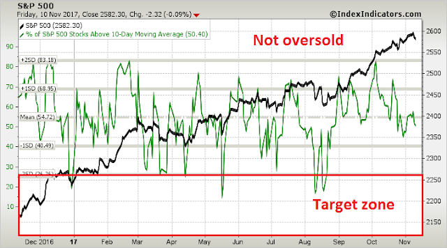 Short term breadth indicators from Index Indicators are nowhere near an oversold reading.