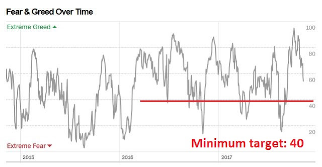The Fear and Greed Index stands at 54, and the market has historically not bottomed until it has fallen to 40 or less.