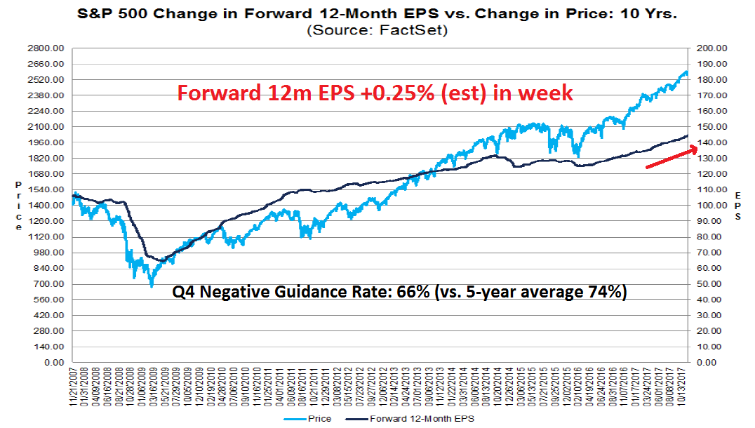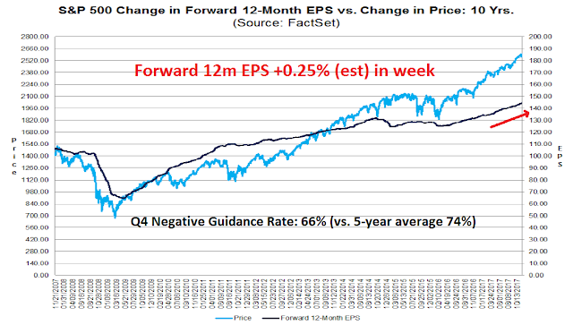 From a technical perspective, I am watching for signs of faltering momentum as a warning of a market top. The current macro environment is showing strong fundamental and price momentum. The latest update from John Butters of FactSet indicates that forward 12-month EPS continues to rise strongly, which is an indication of fundamental momentum.