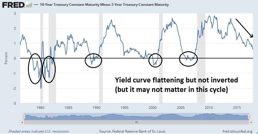 Scott Grannis recently outlined a well reasoned thesis of why investors should not be overly concerned about the flattening yield curve. Cutting to the chase, here is his conclusion:
