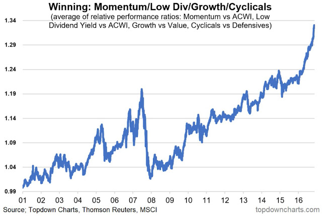 However, some caution may be warranted in making too large a bet on price momentum. Topdown Charts recently pointed out that price momentum is highly extended on a global basis.