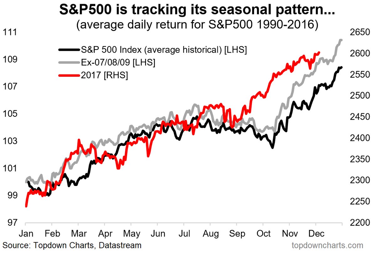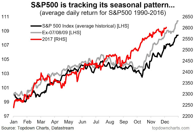 My inner investor remains constructive on stocks. He is neutrally positioned with his asset allocation at his investment policy target weight. My inner trader took profits on Friday, but he is still intermediate term bullish. He is hoping for a pullback next week so that he can buy in at lower prices. His positioning is consistent with the observation from Callum Thomas of the market seasonal pattern of a brief period of consolidation in late November and early December, followed by a rally into the year end.
