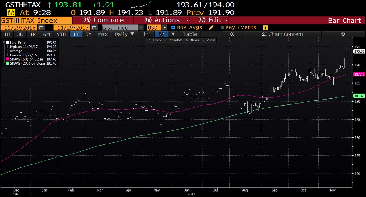 The combination of the market enthusiasm yesterday and the strength in the Goldman Sachs high tax basket indicates that the market is discounting the passage of the bill.