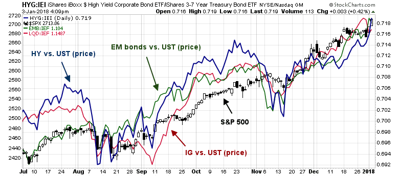 The experience in 2017 showed that we are in a momentum dominated environment. Despite these technical and sentiment warnings, it may not be prudent to go short without some visible sign of a downside break. On the other hand, traders who are long may wish to pay close attention to risk management. Either tighten up on your stops, or pay attention to factor behavior.