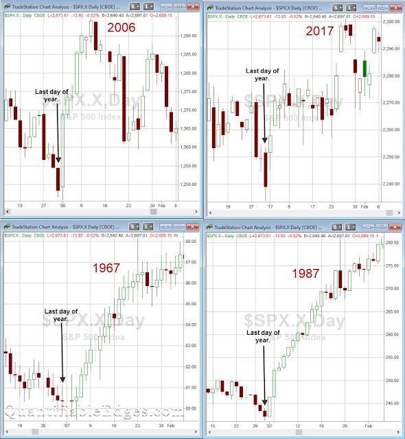 Hanna followed that tweet with a post which observed that positive momentum on the first day of the year usually leads to follow through for the next two days (which would be tomorrow, or Thursday).