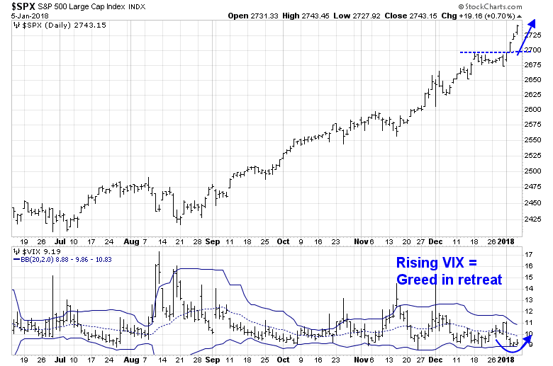 Two weeks ago, I wrote that the market was undergoing a melt-up characterized by a series of “good overbought” conditions (see A sector review reveals animal spirits at work). So far, market action is following the path I set out for it. Expect further intermediate term upside ahead.