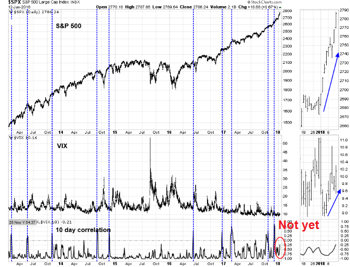 My inner investor remains bullishly positioned, and my inner trader added to his long positions after the brief pause that he anticipated (see Can the melt-up continue?). In a future post, I will detail the risks that may derail this blow-off. Stay tuned for Bubbleology 102.