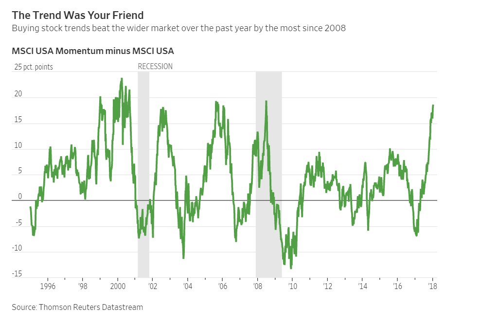 The WSJ recently published an article about the dominance of price momentum: “The Momentum Game Has Returned to the Stock Market”.
