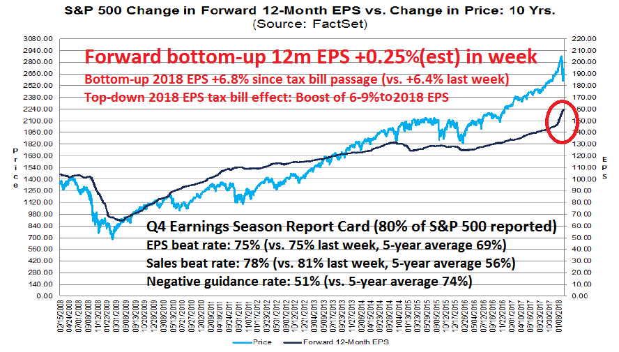 Q4 earnings results have been nothing short of spectacular. Both EPS and sales beat rates are well ahead of expectations, and a record number of companies are issuing positive guidance for 2018.