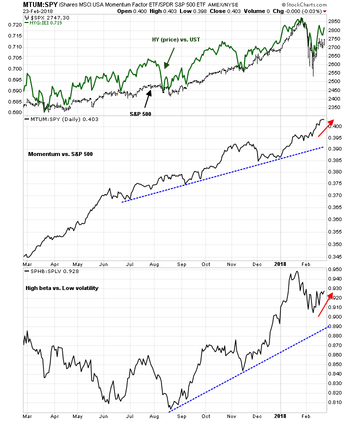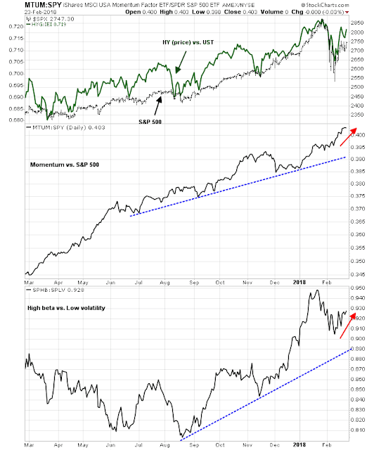 This chart leads to a glass half full-half empty interpretation. The half full bullish view is the rebound leaders are the high beta and momentum stocks, which is indicative of a renewal of risk appetite. The half empty bearish view is the combination of narrow leadership and middling breadth is not the foundation of a sustainable rally.