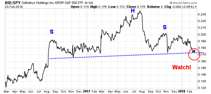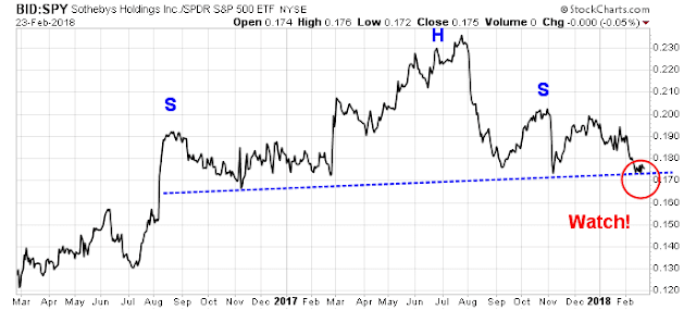 Another offbeat indicator of hard asset returns is the relative performance of Sothebys Holdings (BID), which benefits from rising demand and prices of collectibles in an inflationary era. Sadly, the relative performance chart of BID is setting up to form a head and shoulder formation. If the neckline were to break, it would be a bearish signal for the relative performance of this stock.