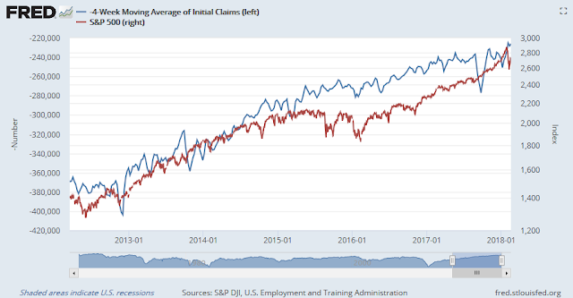 In addition, initial jobless claims (blue line) has shown a close inverse and coincident correlation to stock prices (red line). Initial claims continue to improve and show no signs of weakness, which is equity bullish.