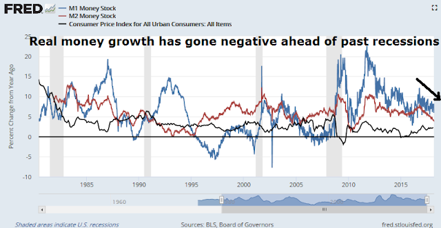 In the meantime, the tightness in monetary policy is showing up on money growth. In the past, real money growth, whether M1 or M2, has turned negative ahead of recessions. Today, real M2 growth is on pace to turn negative in the next few months, which would be a recessionary red flag.