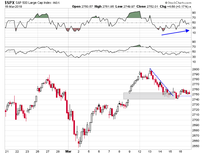 Major bearish impulses do not start with readings at these levels. Oversold markets can get more oversold, and the downside potential is the market tests its lows of early March.