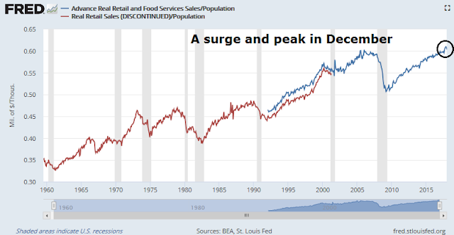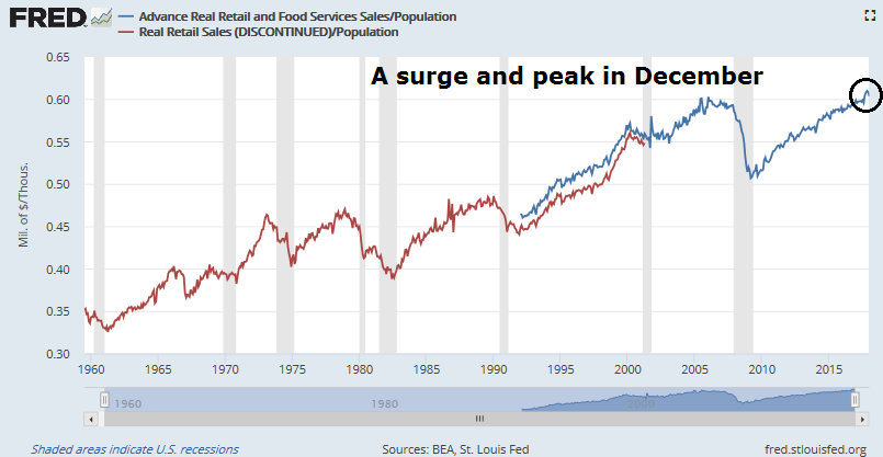 Starting with the consumer, this sector is starting to show some signs of weakness, but there is no clear and present danger just yet. Retail sales declined for three months in a row, and real retail sales peaked in December. However, the strength in retail sales late last year remarkable and the recent declines could be just a data blip.