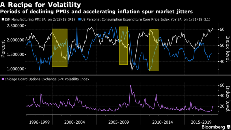 Bloomberg reported that Morgan Stanley cross-asset strategist Andrew Sheets highlighted a changing environment of weakening Purchasing Manager Indexes (PMIs) and rising inflation. Such regimes shifts have typically led to rising volatility.