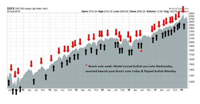 Update schedule: I generally update model readings on my site on weekends and tweet mid-week observations at @humblestudent. Subscribers receive real-time alerts of trading model changes, and a hypothetical trading record of the those email alerts is shown here.
