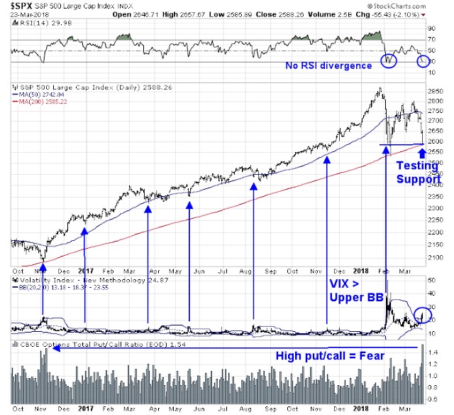 The other major threat to the market is the risk of a major trade war. I refer readers to analysis written in January that outlined the possible scenarios (see Could a Trump trade war spark a bear market?). The headlines certainly appear to be ominous. Trump announced that he has instructed US Trade Representative (USTR) Robert Lightizer to impose about $50 billion in tariffs on Chinese imports, according to this USTR factsheet. The USTR will have 15 days to come up with a proposed list of products, and there will be a 30 day comment period before the tariffs are actually imposed.
