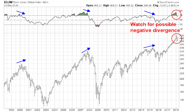 And regarding the $DJW chart with the comment “Watch for possible negative divergence”: do you think the RSI that peaked in early 2018 is too high to surpass given current sentiment and political uncertainty? This would mean negative divergence unless the market rallies sharply.