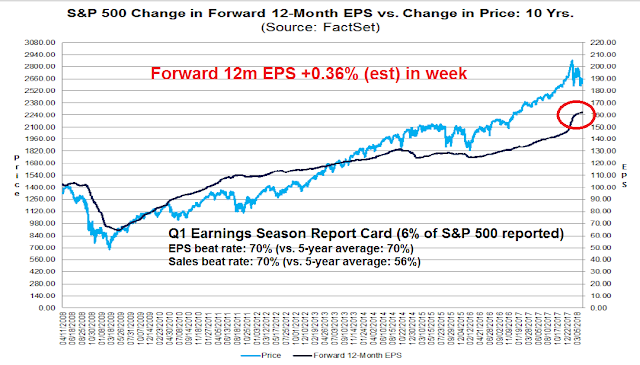 In addition, forward 12-month EPS continues to be revised upwards, which is an indication of fundamental momentum. FactSet reported that Q1 earnings guidance is the most bullish on record since they started tracking this metric in Q2 2006.