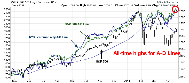 From a technical perspective, stock market is well supported by positive divergence from breadth indicators. Both the SPX Advance-Decline Line and the NYSE common stock only A-D Line made all-time highs last week.