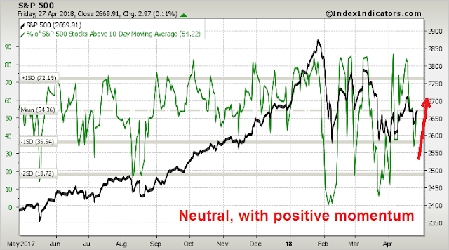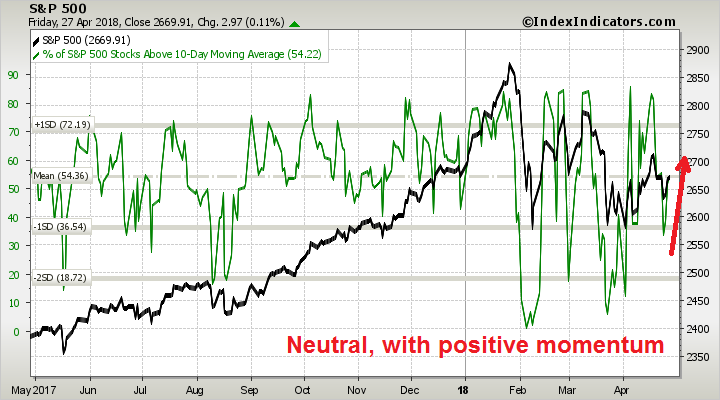 On a longer (3-5 day) time frame, breadth readings are neutral but exhibit positive momentum tendencies, which is bullish.
