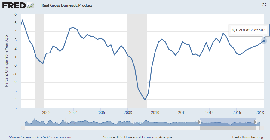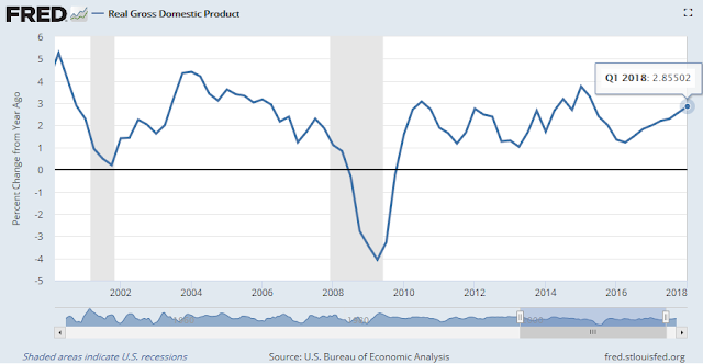 Q1 GDP growth has historically been depressed by seasonal factors. When we unpack some of the unusual conditions, we can see that Q4 to Q1 was distorted by hurricane-driven Q4 spike in auto sales and home repairs. GDP growth ex-hurricane effects was 2.7%. YoY GDP growth, which sidesteps the seasonal issues, came in at 2.9%.
