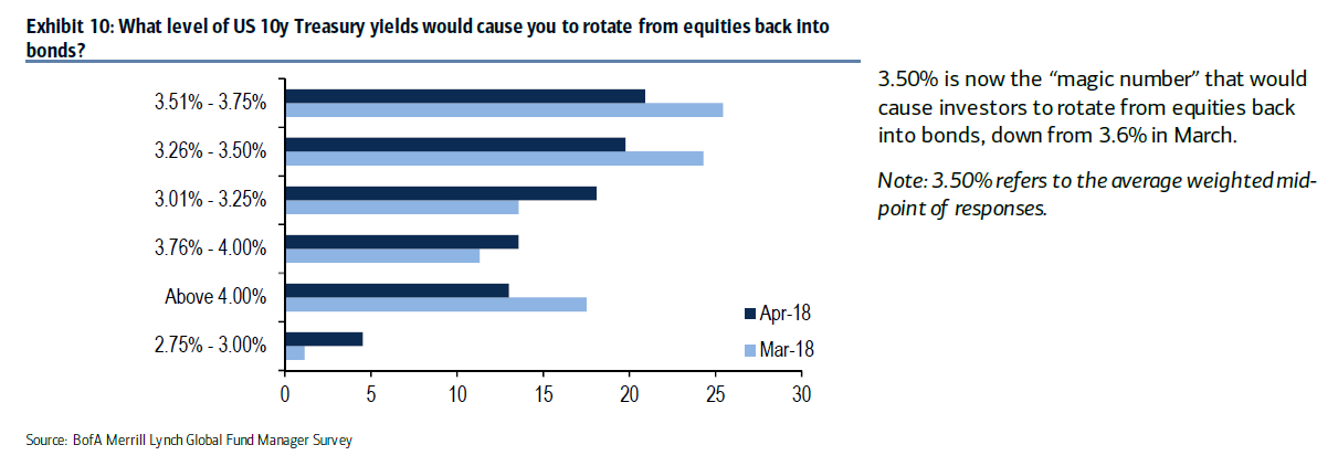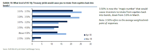 I also referred to the BAML Fund Manager Survey which indicated that fund managers were not overly worried about equities until yields approached 3.5%.