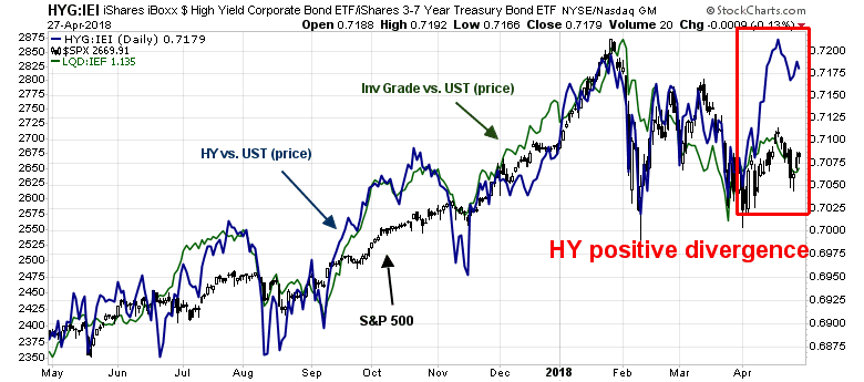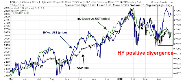 The WeWork offering is an indicator of low stress levels in the financial system. In general, high yield (HY) bonds have been flashing a positive divergence against stock prices, though the risk appetite of investment grade bonds is roughly tracking equity movements.